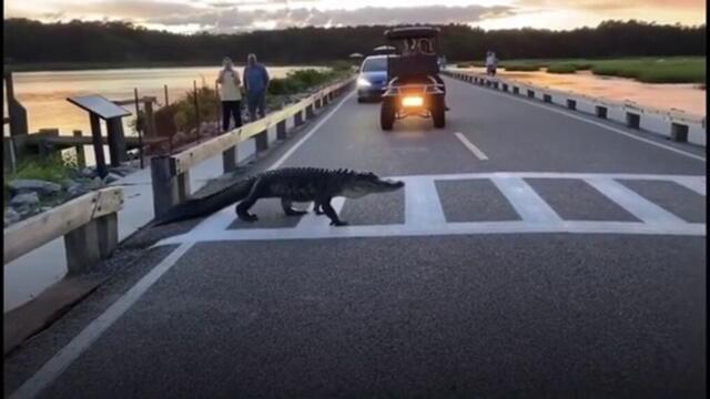 Огромен Крокодил пресече по пешеходна пътека необезспокояван - Videoclip.bg
