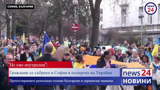 Гледай "Не сме неутрални": Граждани се събраха в София в подкрепа на Украйна, видео качено от news24sofia, във Videoclip.bg - видео споделяне за всички българи!